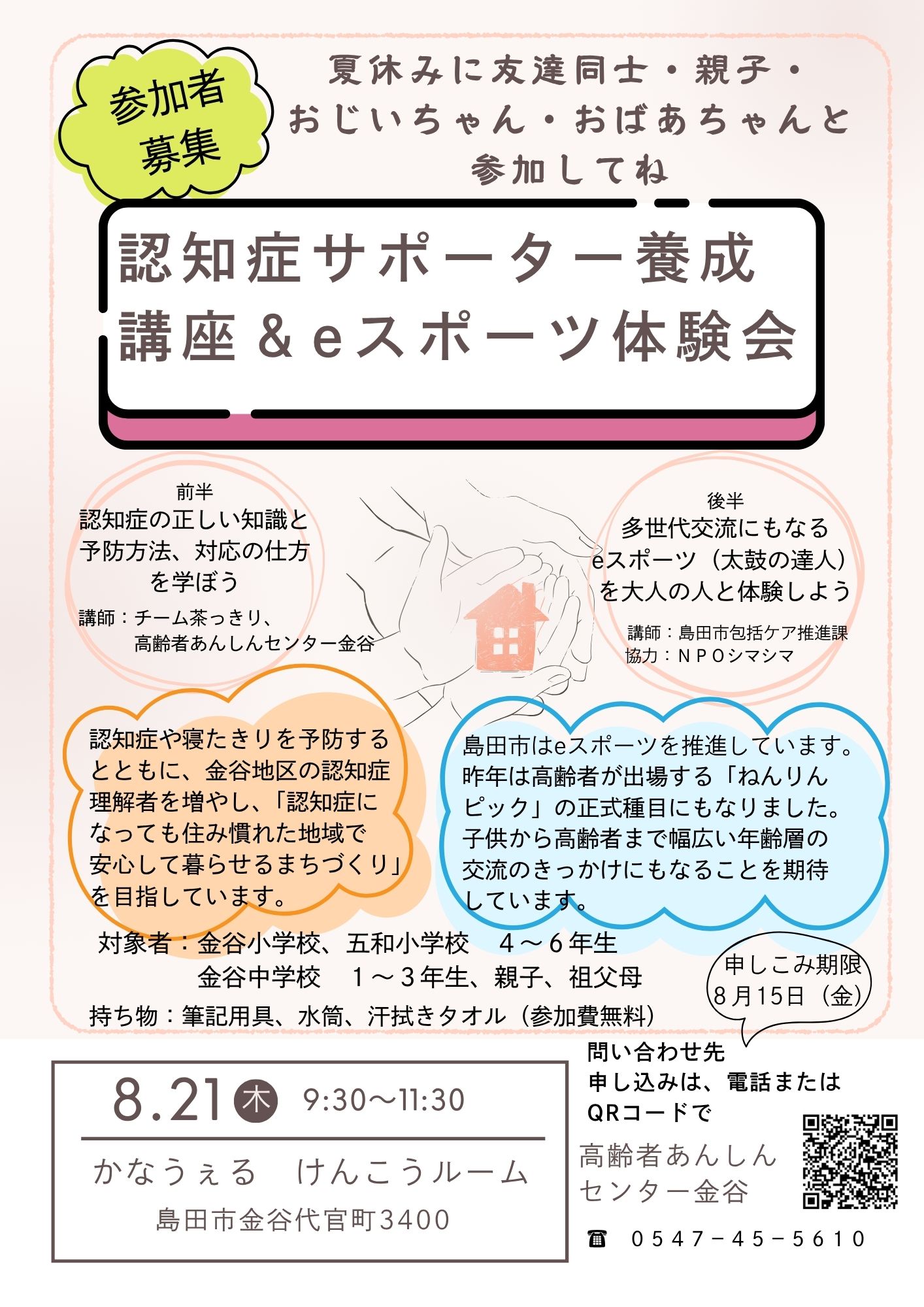 【対象者】金谷小学校、五和小学校 4~6年生 / 金谷中学校 1~3年生、親子、祖父母