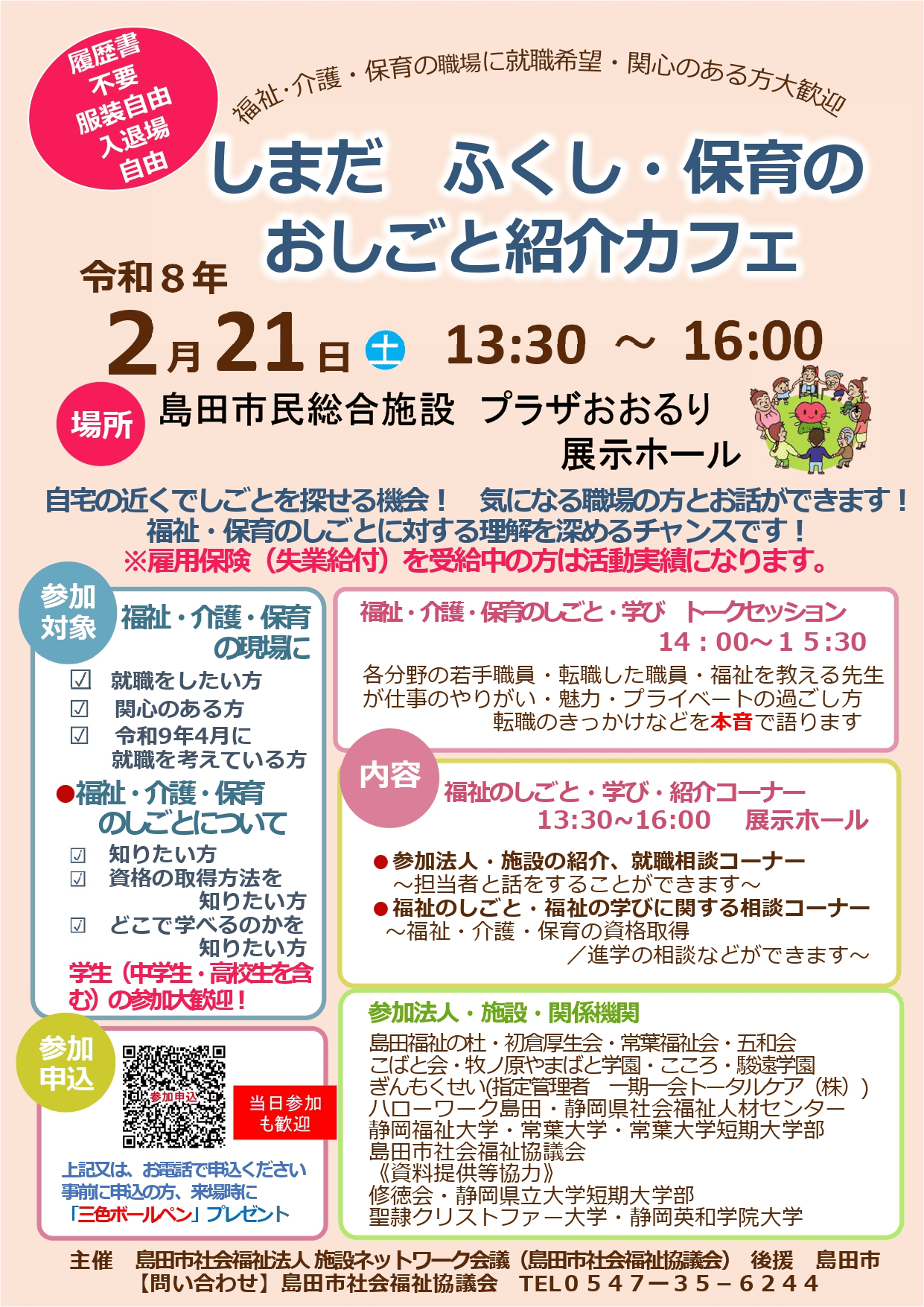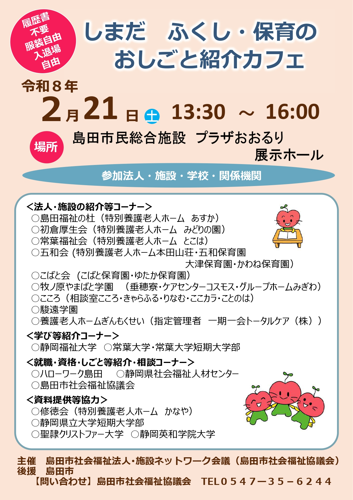 『しまだ ふくし・保育のおしごと紹介カフェ (令和8年2月21日開催)』参加者募集!