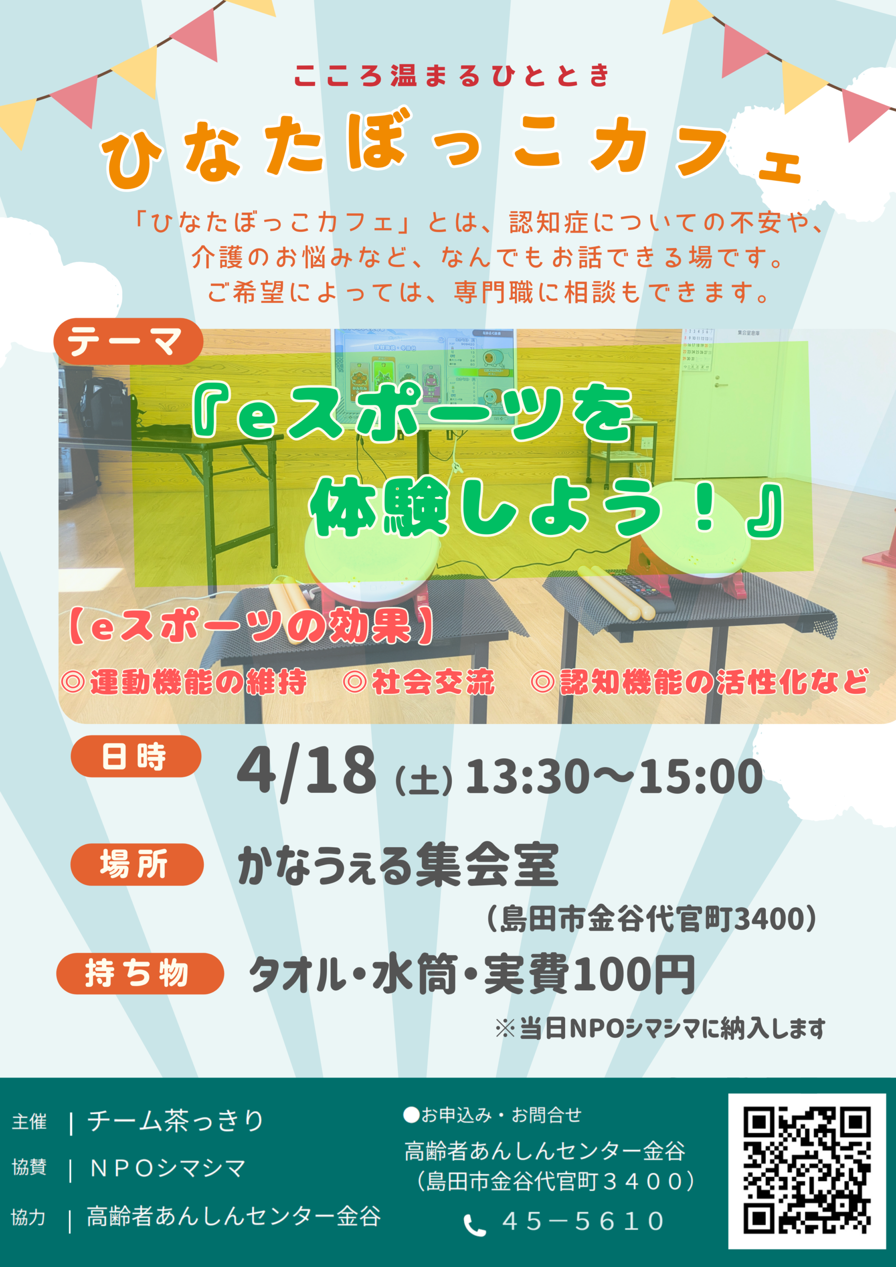 お申込みは、チラシのQRコードまたは高齢者あんしんセンター金谷(☎45-5610)まで。