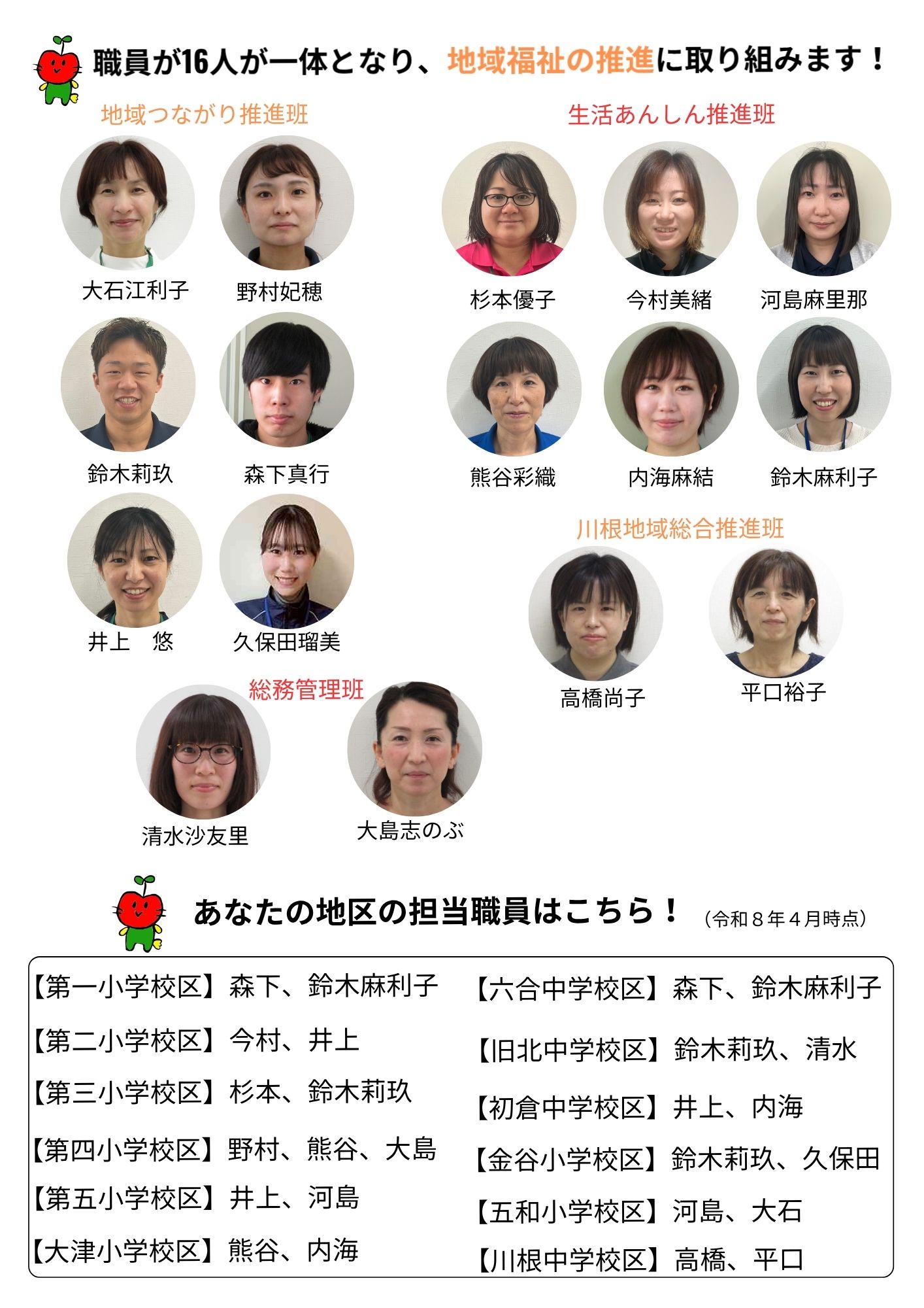 令和8年度の「地域福祉コーディネーター事業」について、事業内容と各地区の担当職員を紹介します!