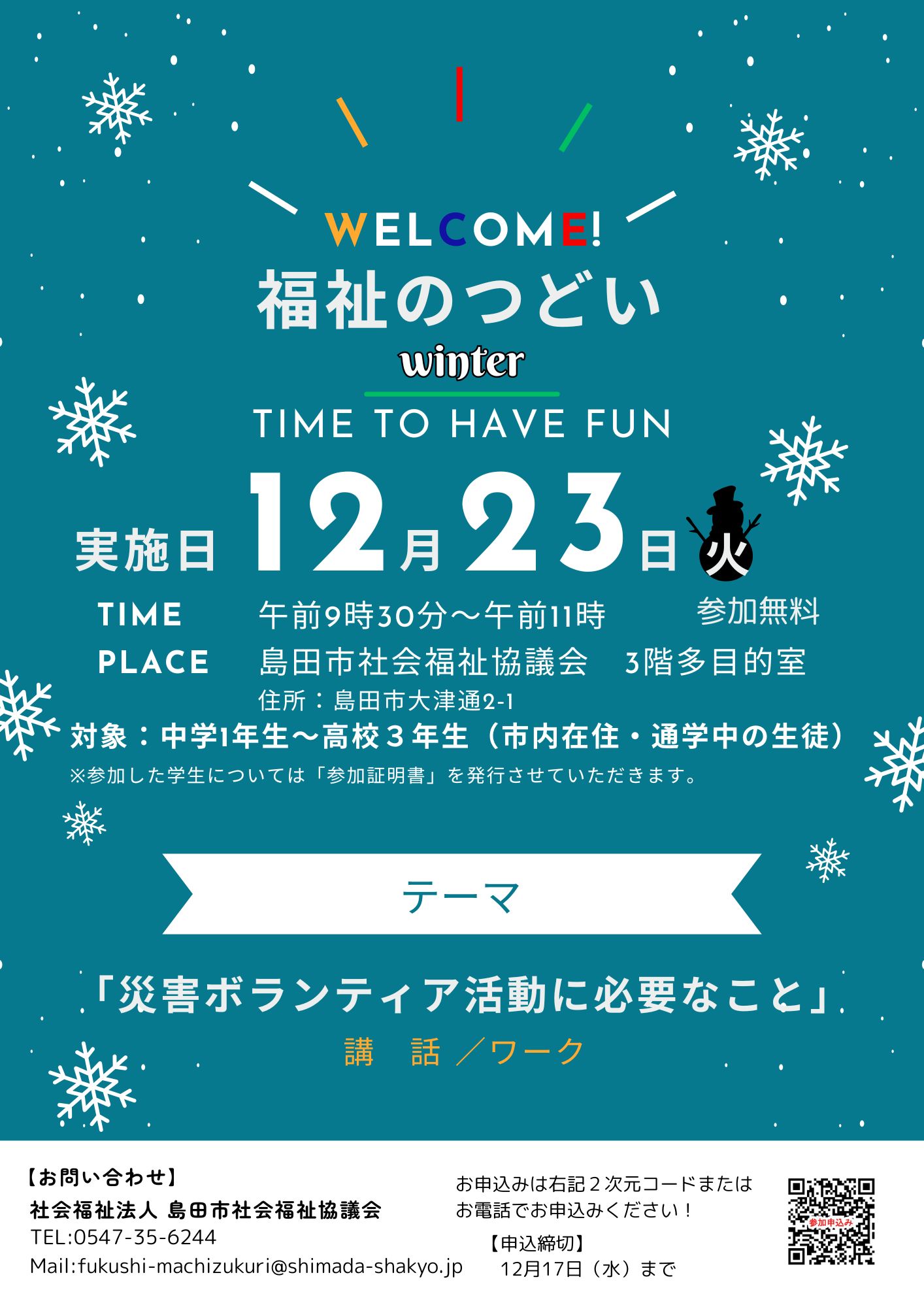 令和7年度 冬休み「福祉のつどい」を開催!!