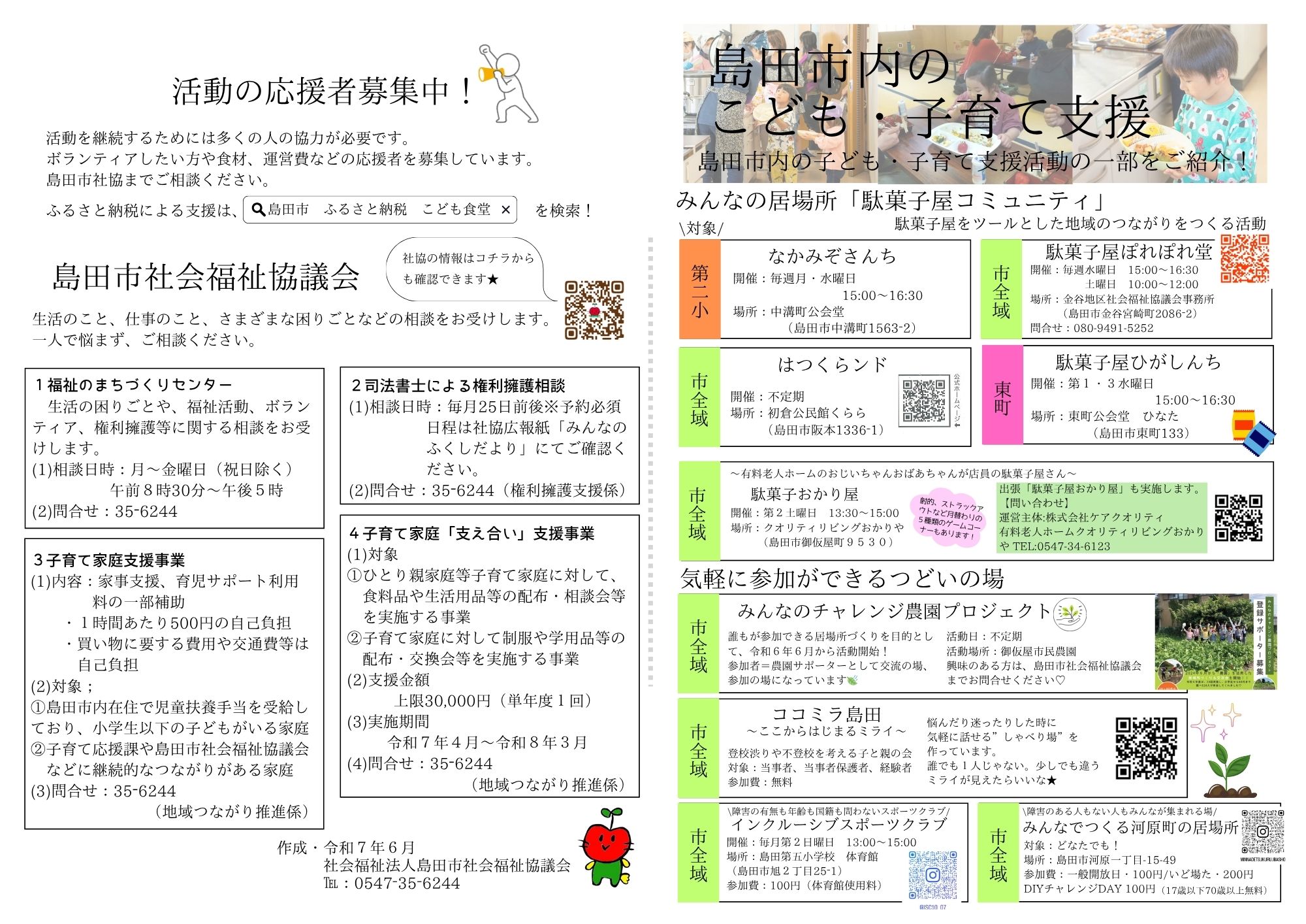 子ども食堂や障害者支援、不登校支援等を行う活動や活動団体をチラシにまとめました。